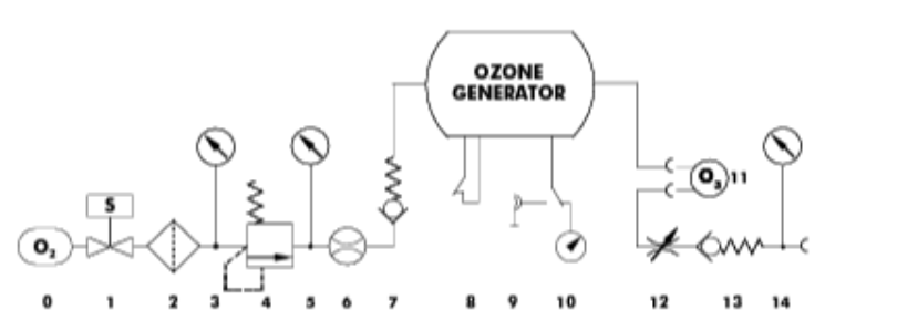 出口針閥后面的耐臭氧壓力表顯示臭氧系統反壓,即臭氧氣體流入的壓力。